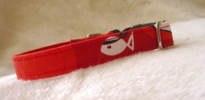 | Pets can enjoy Marine Maddness too with this Samurai Sushi 100% cotton collar by PeachyKeenPets (Canada) |