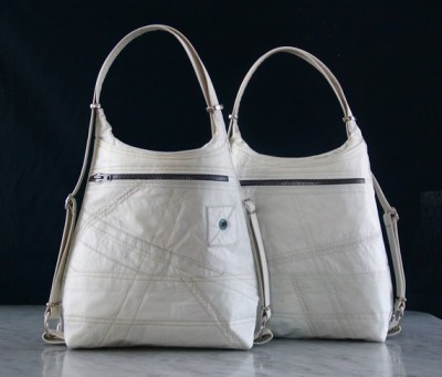 | Chic adjustable backpack turned shoulder bags made from recycled Maine sail cloth by MimsMaine (USA) |