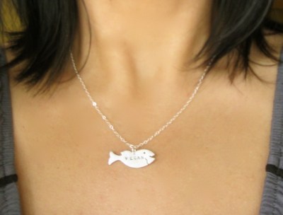 | Mini Vegan Fish Pendant handmade out of recycled aluminum by Julep115 (USA) |