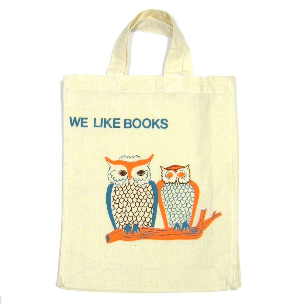 Owls Mini Tote Bag by Memo – Owls + Books = YAY! 100% cotton with hand screen printed design. A sweet bag for your library books :o)