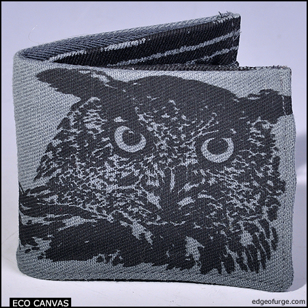 Owl Heads Eco Canvas Wallet by FluffyCo – This brilliant wallet is an organic cotton-hemp blend. A nice little feature is that the interior grain is unique to each wallet