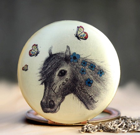 | Free Spirited Horse Locket by Amber Sky – Using a vintage 1960s locket and an original drawing to create something unique & sweet |