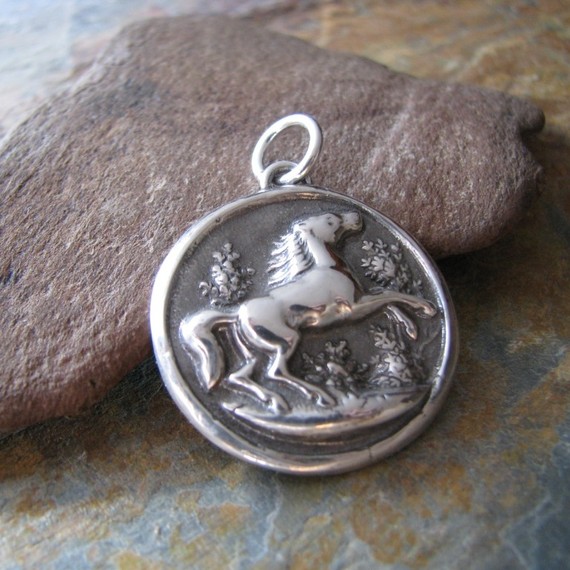 | Handmade Rearing Horse Silver Pendant with Sterling Ring by Silver Wishes – Beautiful handmade 99.9% silver jewelery using an antique button! |