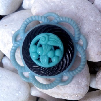 | Blue Berry Brooch by Cherish – One-of-a-kind piece using upcycled vintage components. Great colour & fabulous design. As an amazing bonus at least 30% of sale will go towards an animal welfare agency! |