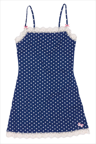 | Fairly Dotty Chemise by Life’s Not Fair…But My Knickers Are – Made from certified organic cotton and anitque lace. Available from Saumarez Lingerie, this chemise is adorable and ethical nightwear! |