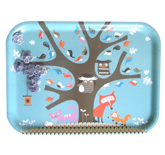 | Oak Tree Birch Tray – Made from sustainably sourced birch and the sweet designs are printed using vegetable based inks. Big “awwww” factor! |