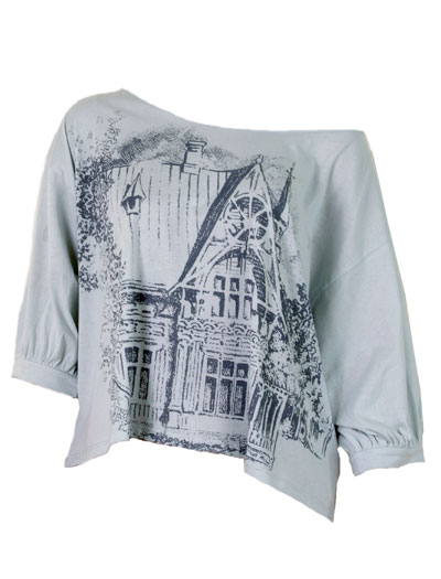 | Short T-Shirt by Camilla Norrback – 100% organic cotton with an eye-catching country house print. Available at Daisy Hill |