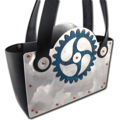 | Vegan Steampunk Bag with Blue Patina Gear by Moda Industria -Looking for something futuristic for your ensemble? Look no further! |