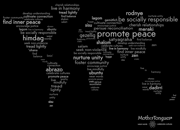 I love Mother Tongue’s unique 100% certified organic cotton scarves! Made by a family-owned and operated enterprise in Costa Rica with the inspiring words printed with water-based ink in the US. You can literally wrap yourself in good thoughts :0)