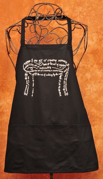 | This lovely Slow Food Apron (also available in sky-blue) helps to keep us in the moment when creating loving meals |