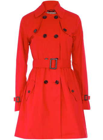 | Red Tie Waist Mac from Dorothy Perkins – This vibrant cotton double breasted mac will brighten up those gloomy rainy days |