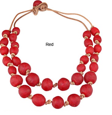 | Ghana Recycled Glass Necklace from Global Girlfriend – Stunning bead necklace handmade by women beaders in El Agabe in Ghana using recycled glass from bottle and jars. The only downside is the leather cord is obviously not vegan |
