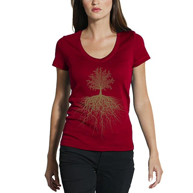 | Red Women’s Logo Shirt from Etiko – Made from certified organic and fairtrade cotton in India |