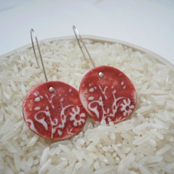 | Red Flower Porcelain Earrings by Mrs Peterson Pottery – Handmade in the Blue Mountains of New South Wales, these unique earrings are charming |
