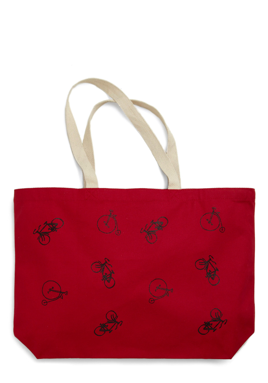 | Alternative Transport Tote from ModCloth – With threat of climate change increasing each day, why not make a statement about reducing CO2 by ditching the car and cycling about with your eye-catching tote? |
