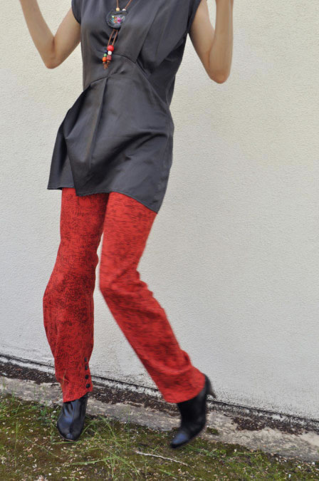 | Hand Printed Marigold Dress by Miranda Earle – I love how this dress is both sexy and sweet. Made from red wine cotton velveteen |
