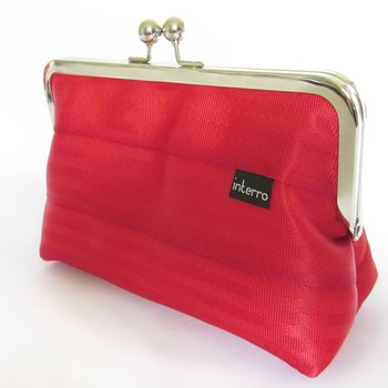 | Red Seatbelt Clutch created in collaboration between Interro & Needle vs Thread -I love the colour so much and I love that it’s made from recycled materials |
