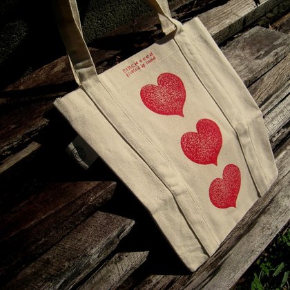 | Red Love Heart Block Print Tote by The Organic Mamas – 100% organic shopping bag that has been made to last and look great all at the same time! |