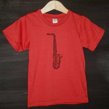 | Organic Red Cotton Infant Saxophone Shirt by Hummingbird – Who says babies can’t be sophisticated? Not me and not Hummingbird! |