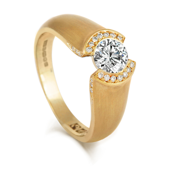 | Fairtrade Fairmined eco yellow gold diamond ring with brushed finish |