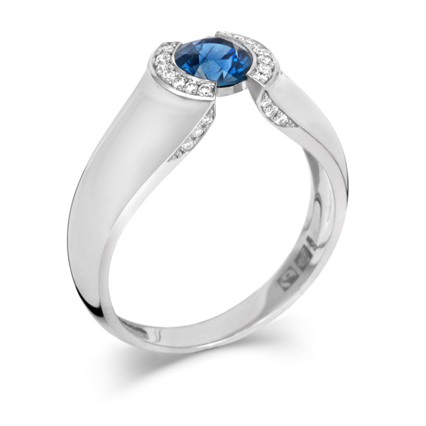 | Fairtrade Fairmined eco white gold sapphire & diamond ring with polished finish |