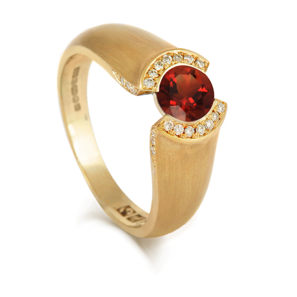 | Fairtrade Fairmined eco yellow gold fire citrine & diamond ring with brushed finish |