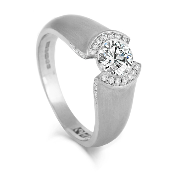 | Fairtrade Fairmined eco white gold diamond ring with brushed finish |