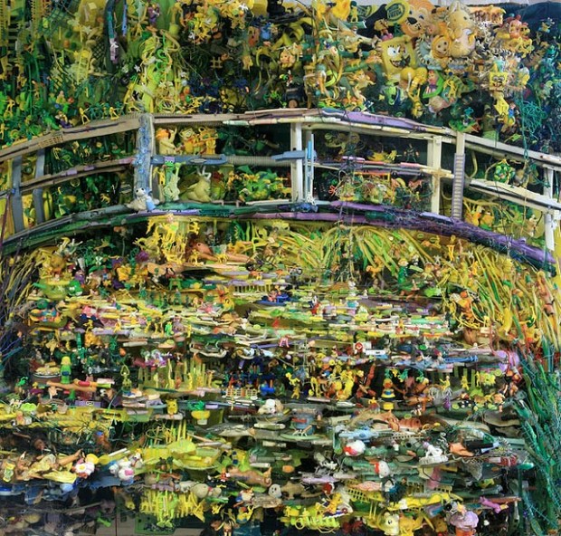 | “Kermit” – This ethereal artwork was constructed from plastic debris (PET), rivets, tinted polycrylic and mica powder |