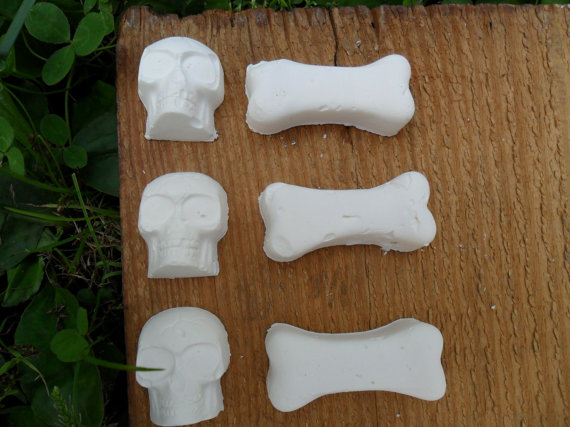 | Handmade Vegan Skull + Bones Soap by My Bee Bars – These spine-tingling soaps are just the thing for bath time. Created using whipped soap they’ll float about oozing pumpkin spice aromas! |