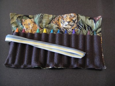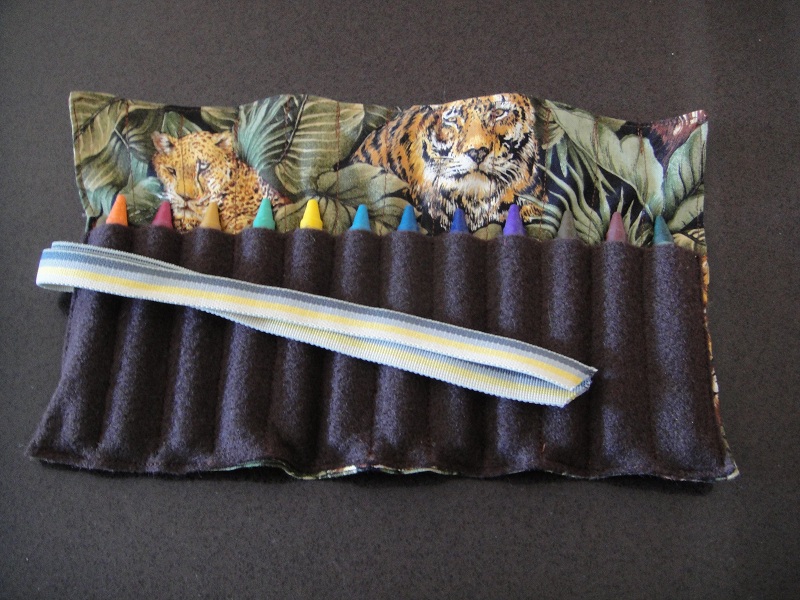 | Jungle Fabric Crayon Roll by Recycled Fashion (Erica Louise) – made from material created using 100% post-consumer recycled plastic bottles! |