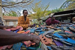 | Zebra sculpture made from recycled flip-flops that have washed up onto the beaches of Kenya by Ethical Gifts |