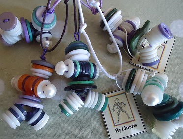 | Button Dollies are funky necklaces made from recycled buttons by Button Design Arts |