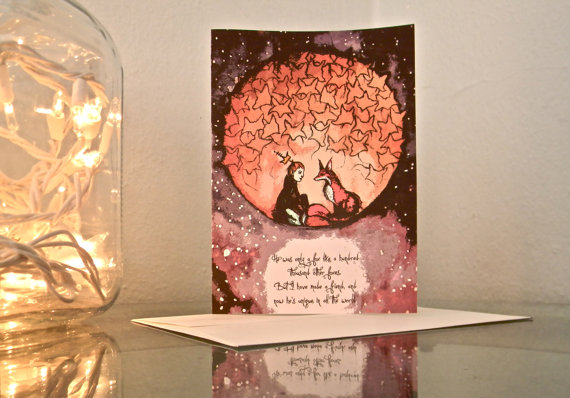 | The Little Prince and His Fox Greeting Card from Britteny Maynard – This heartfelt illustration was inspired by a delightful episode in one of my favourite stories – The Little Prince by Antoine de Saint-Exupéry |
