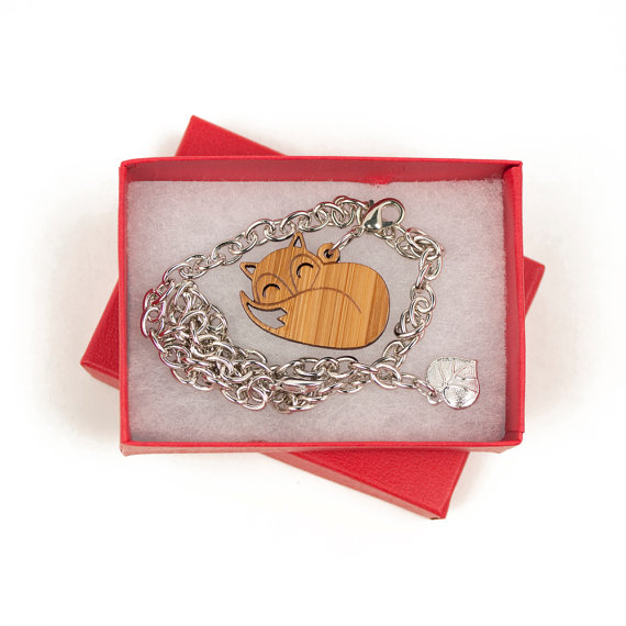 | Sleeping Fox Charm Bracelet by Graphic Spaces Wood – Made from bamboo this charming fox would be a delightful companion on your daily travels |