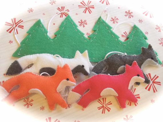 | Fox Forest Mobile by Little Luxuries Loft – These four colourful eco-felt foxes are ready to scamper about and add cheer to your home |
