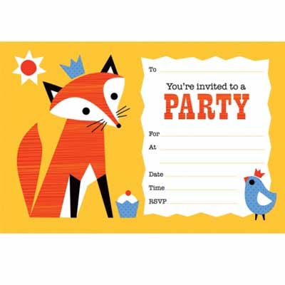 | Mr Fox Retro Party Invitations available from State of Green – These foxy fun invites have been printed on environmentally friendly + carbon neutral card |