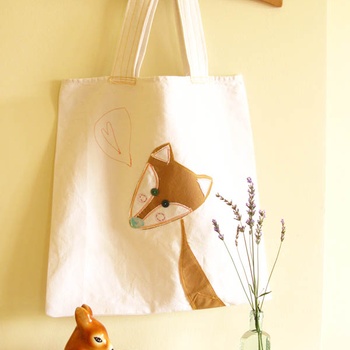 | Lady Fox Upcycled Tote Bag by Cherrytime – This whimsical fox tote has been lovingly crafted from upcycled vintage white bed linen with the awesome addition of vintage buttons |