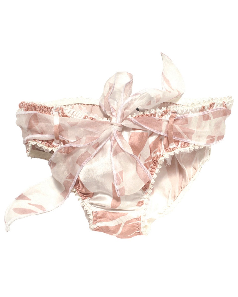 | Pink and Cream Satin Tie Knickers by Eco-Boudoir – These gorgeous underpants are lovingly made from peace silk, although you’d be excused for thinking they’re part pink icing sugar and part dollops of fresh cream |
