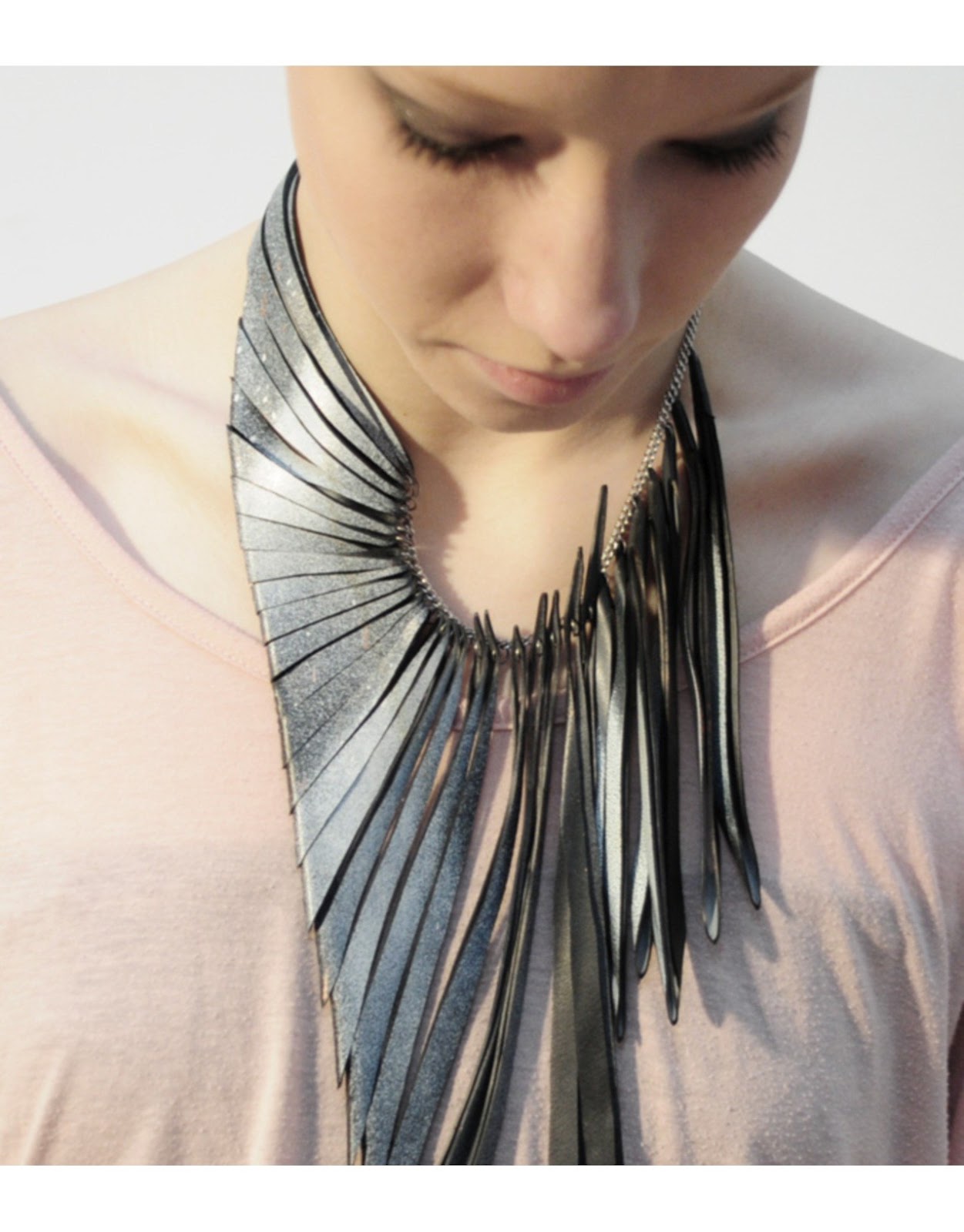 | Wave Necklace by Emma Ware – This amazing wearable artwork has been handmade using reclaimed materials. It evokes images of flotsam and jetsam found by a lucky beachcomber. Gorgeous! |