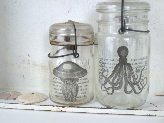| Upcycled Shabby Beach Mason Jars and Plates by Sweet Meas – Beautiful decorative features for any self-respecting beach shack! |