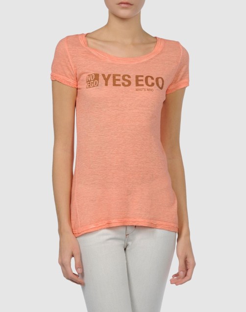 | No Ego | Yes Eco Tee by WHO*S WHO – Great message on this peach tee made from a blend of abaca plant and organic cotton |