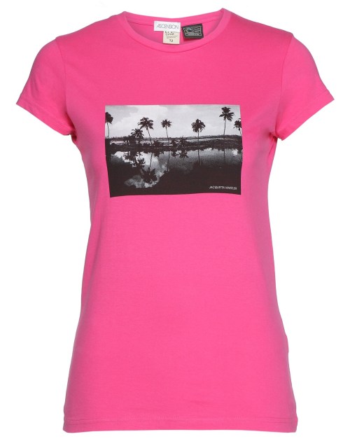 | Palm Trees T-Shirt by Ascension – British fashion model Jacquetta Wheeler took this photo of palm trees which looks fantastic on this pink 100% fairtrade cotton tee. The inks used for this candy-coloured shirt have been approved by the Soil Association |