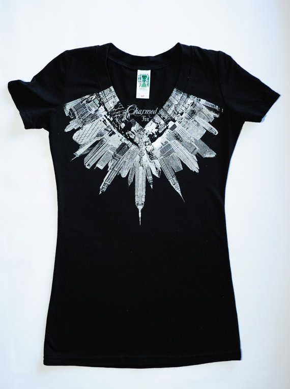 | NYC Skyline V-Neck Tee by Charmed Fox – What a unique homage to the buildings of the city that never sleeps! The designer photographed all the buildings individually for this shirt before silk-screening them using eco-friendly water-based ink |