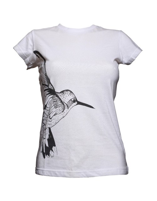 | Hummingbird T-Shirt by Ethics Girls – The endearing bird in flight on this 100% Fairtrade cotton is an original design by illustrator Jenny Nicol |