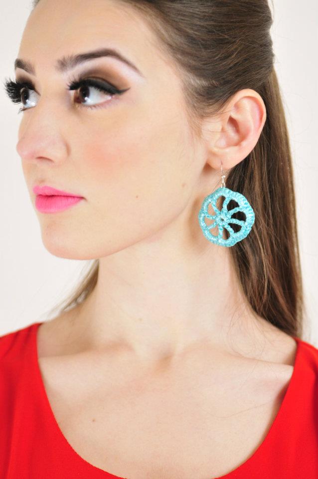 | These striking earrings have been handmade in Bolivia by women entrepreneurs from recycled plastic grocery bags |
