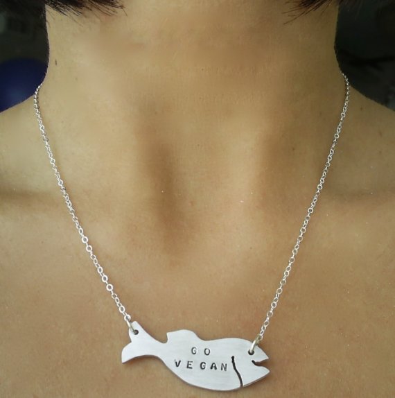 | Go Vegan Fish Pendant by C Robinson Design – This little fishy was handmade out of earth friendly recycled aluminum. He’s got a vested interest in promoting a animal-free diet! |