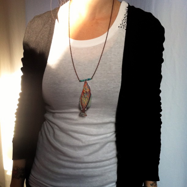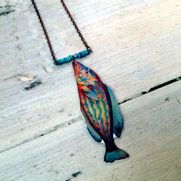 | Big Fish Necklace by Factory on the Moon – Amazingly this one of a kind ocean dweller has been crafted from recycled magazines |