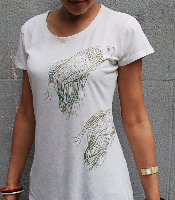 | Betta Fish Tee by The Lotus Root -These beautiful flowing betta fish have been hand screen-printed onto a bamboo and organic cotton tee |