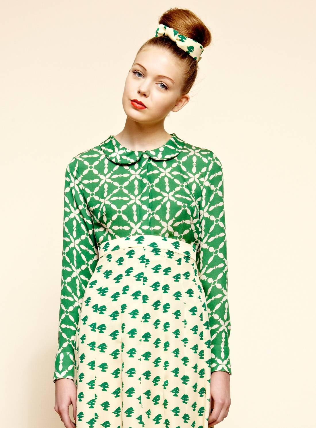| Green Fish Blouse by Charlotte Taylor – This top (pictured here with a bonsai print skirt) is just stunning! |