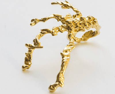 | The Seashore Collection by October Anniversary – (a) Conch Shell Ring (b) Corvina Fish Skeleton Ring (c) Fire Coral Ring — all are made from recycled silver |